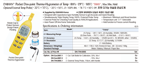 DaiHan THH5 Pocket Dew-point Thermo-Hygrometer (Temp·RH%·DP℃·WB℃) | EMIN.CO.ID