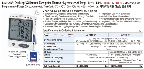 DaiHan THH7 Desktop/Wallmount Dew-point Thermo-Hygrometer of Temp·RH%·DP℃ (Temp·RH%·DP℃) | EMIN.CO.ID