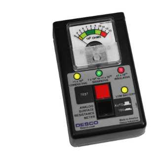 Resistance Ranges: 1 x 10^3 to 1 x 10^13 ohms @ 10 Volts, complies with ANSI/ESD S4.1
