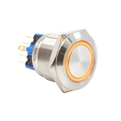 E-Switch PV8F2Y0SS-3K1 Anti-Vandal Anti-vandal, DPST-NO/NC, Off-(On), On-(Off), Panel Mount, Front, Silver, LED, Green/Orange, IP65 | EMIN.CO.ID