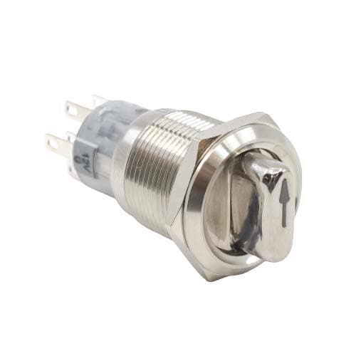 E-Switch PVK4S22C0SS-A34 Keylock Switches Anti-vandal, DPDT, On-On-On, Panel Mount, Front, Silver, LED, Green, IP65 | EMIN.CO.ID