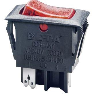 E-T-A Circuit Breakers 1410-F110-P1F1-W14QB3-1.5A Thermal Overcurrent Miniaturised single pole rocker switch/thermal circuit breaker combining ON/OFF switching and extremely fast overload performance in a single component (S-type TO CBE to EN 60934/IEC 934). Under overload conditions an internal neon (f