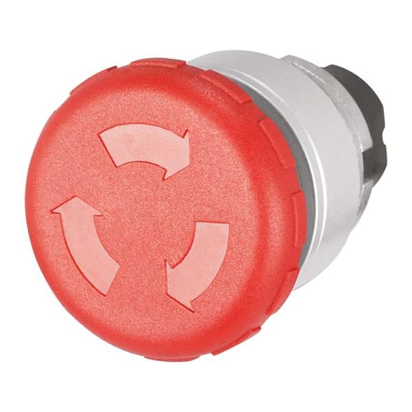 EAO 46-2736.4920.000 Round Actuator, oe 30.5 mm, oe 40 mm, mushroom-head, non illuminative, Red, Plastic, opaque, round, Silver, Aluminium, IP65, IK03, Twist to unlock