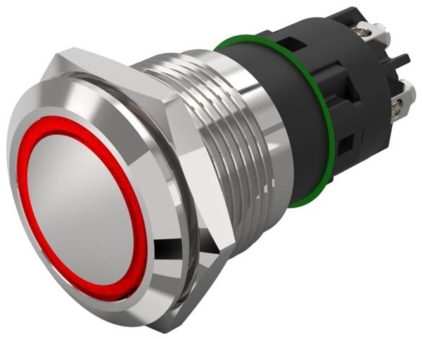 EAO 82-5254.1114 Anti-Vandal 82-5254.1114.Illuminated pushbutton.momentary.19 mm.chrome colour.flush/flat.ring.red.24 V.screw terminal au plated | EMIN.CO.ID