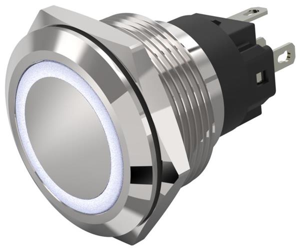 EAO 82-6151.1155 Anti-Vandal 82-6151.1155.Illuminated pushbutton.momentary.22 mm.stainless steel.flush/flat.ring.white.110 V.soldering terminal | EMIN.CO.ID