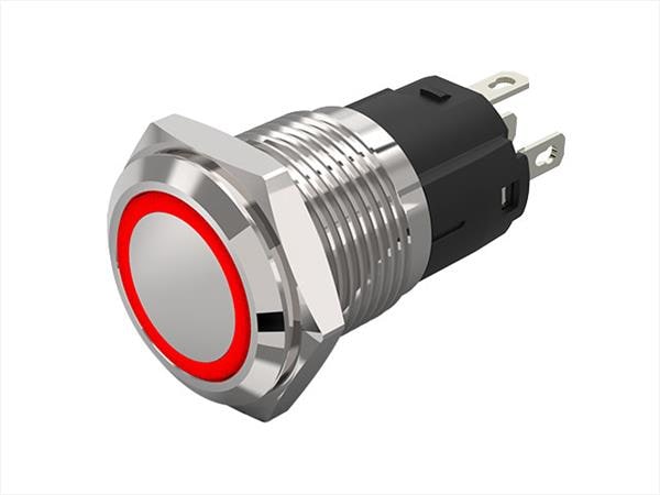 EAO 82-6151.1213 Anti-Vandal 82-6151.1213.Illuminated pushbutton.momentary.22 mm.stainless steel.flush/flat.point.red.12 V.soldering terminal | EMIN.CO.ID