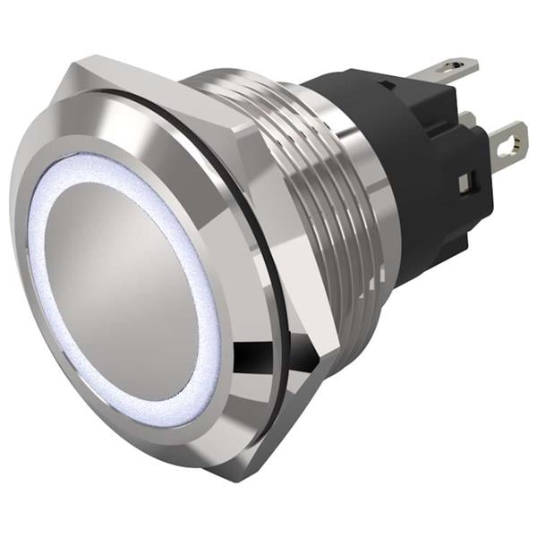 EAO 82-6651.1154 Anti-Vandal Illuminated pushbutton.momentary.22mm.stainless steel SUS 316L.flush/flat.ring illumination Tritan.white 24VDC.Ag.plug in