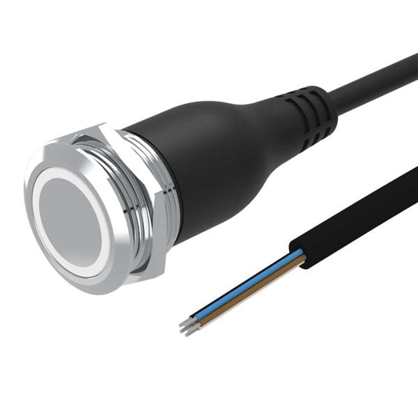 EAO 82-6655.1154 Anti-Vandal Illuminated pushbutton.momentary.22mm.stainless steel SUS 316L.flush/flat.ring illumination Tritan.white 24VDC.Ag.Cable 200mm without Connector
