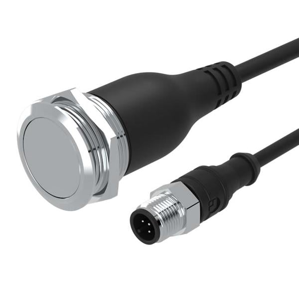 EAO 82-665A.2000 Anti-Vandal Pushbutton.maintained.22mm.stainless steel SUS 316L.flush/flat.Ag.Cable 200mm with M12 Connector | EMIN.CO.ID