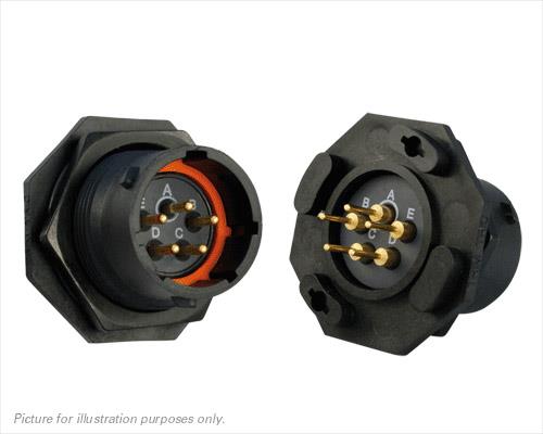 Eaton Souriau-Sunbank UTS714D5PW Receptacles Plastic jam nut receptacle, without backshell, with 5 male PCB contacts, IP68/69K in unmated conditions, keying W