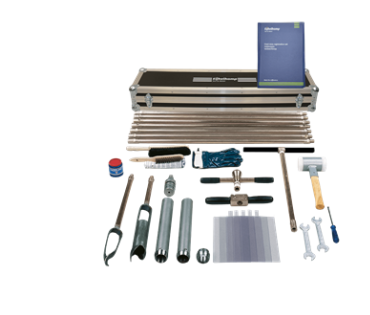 We offer two different sets of liner samplers, this is the one suitable for hard soils thanks to its screw thread connection. The liner sampler has a stainless steel sampler body and the set is packed in an aluminium transport case.
