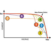 I-V curve analysis is an in-depth diagnostic method for identifying hardware performance issues. For accurate results, devices like the Fluke Solmetric PVA-1500 compare the measured curve to a standard curve, while automatically adjusting for actual radiation and temperature conditions.