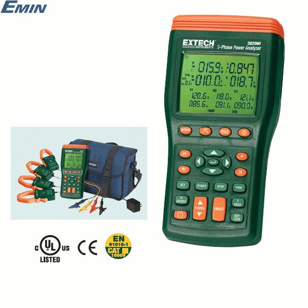 Complete with 4 current clamps, 4 voltageleads with alligator clips, 8 AA batteries, AC adaptor, software, PC interface cable, and case