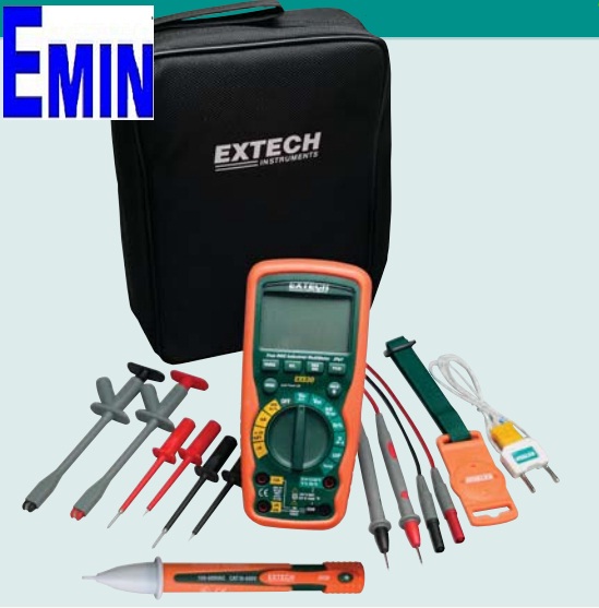 Meter with double molded test leads, magnetic hanging strap, Type K bead wire temperature probe, carrying case, and one 9V battery. Also includes a set of CAT III-100V Electrical Test Lead kit TL810