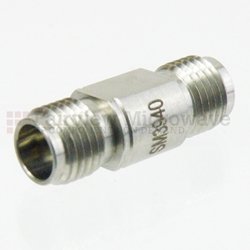 2.4mm to 1.85mm adapter is constructed with female gender on side 1 and female on side 2. SM3940 2.4mm female to 1.85mm female coaxial adapter from Fairview is a straight body style. This straight 2.4mm connector adapter is an in-line RF adapter design.