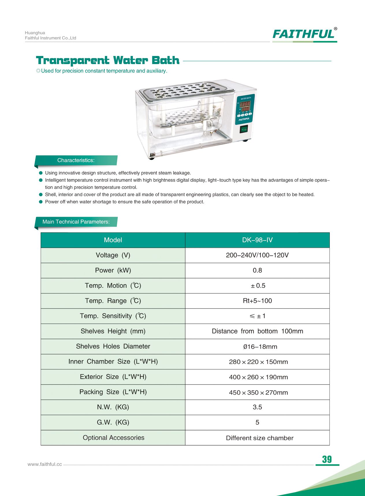 Faithful DK-98-IV Transparent Water Bath (+5~100℃; 0.8kW) | EMIN.CO.ID