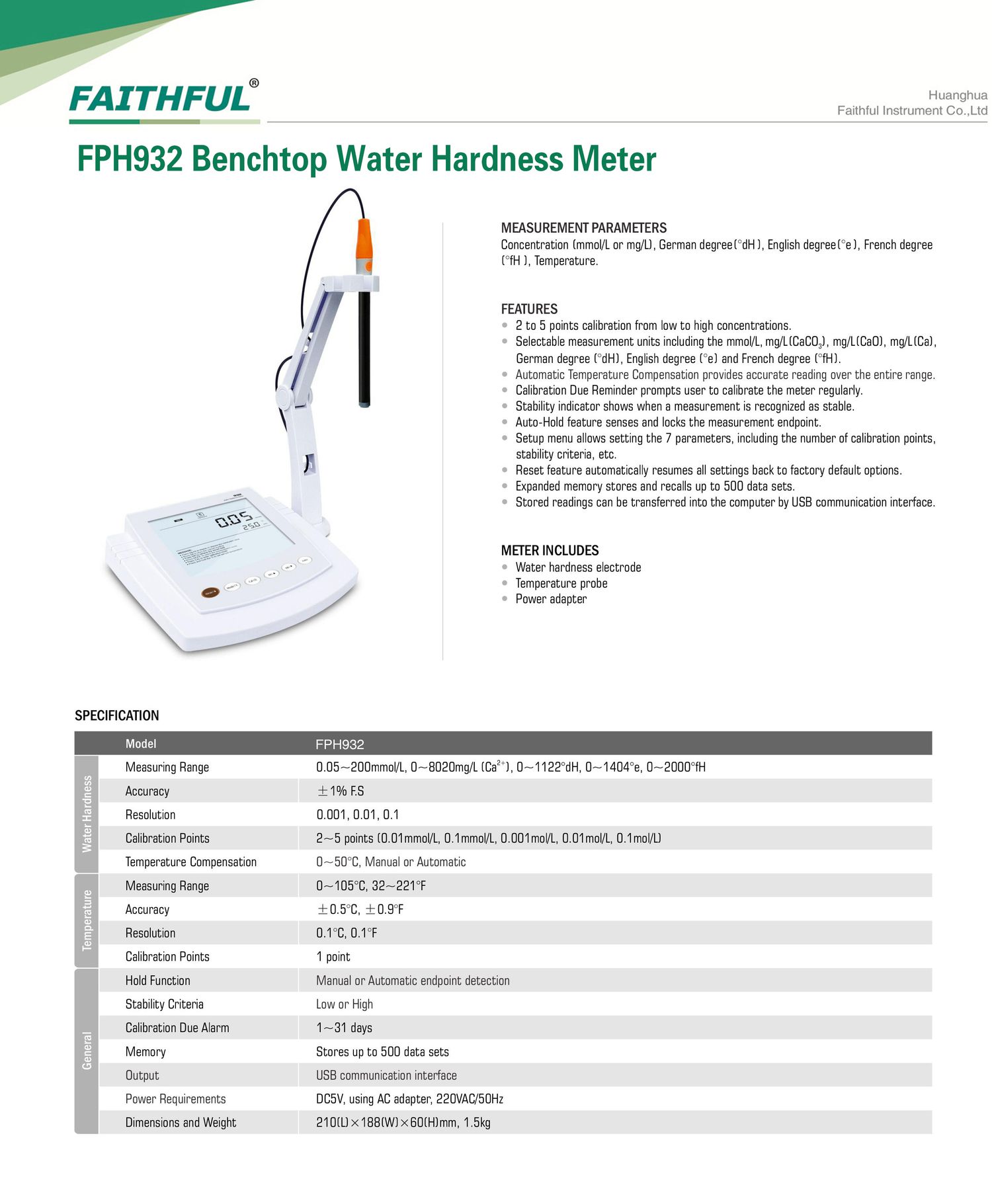 Faithful FPH932 Benchtop Water Hardness Meter (0.05~200mmol/L, 0~8020mg/L(Ca), 0~1122°dH, 0~1404°e, 0~2000°fH) | EMIN.CO.ID