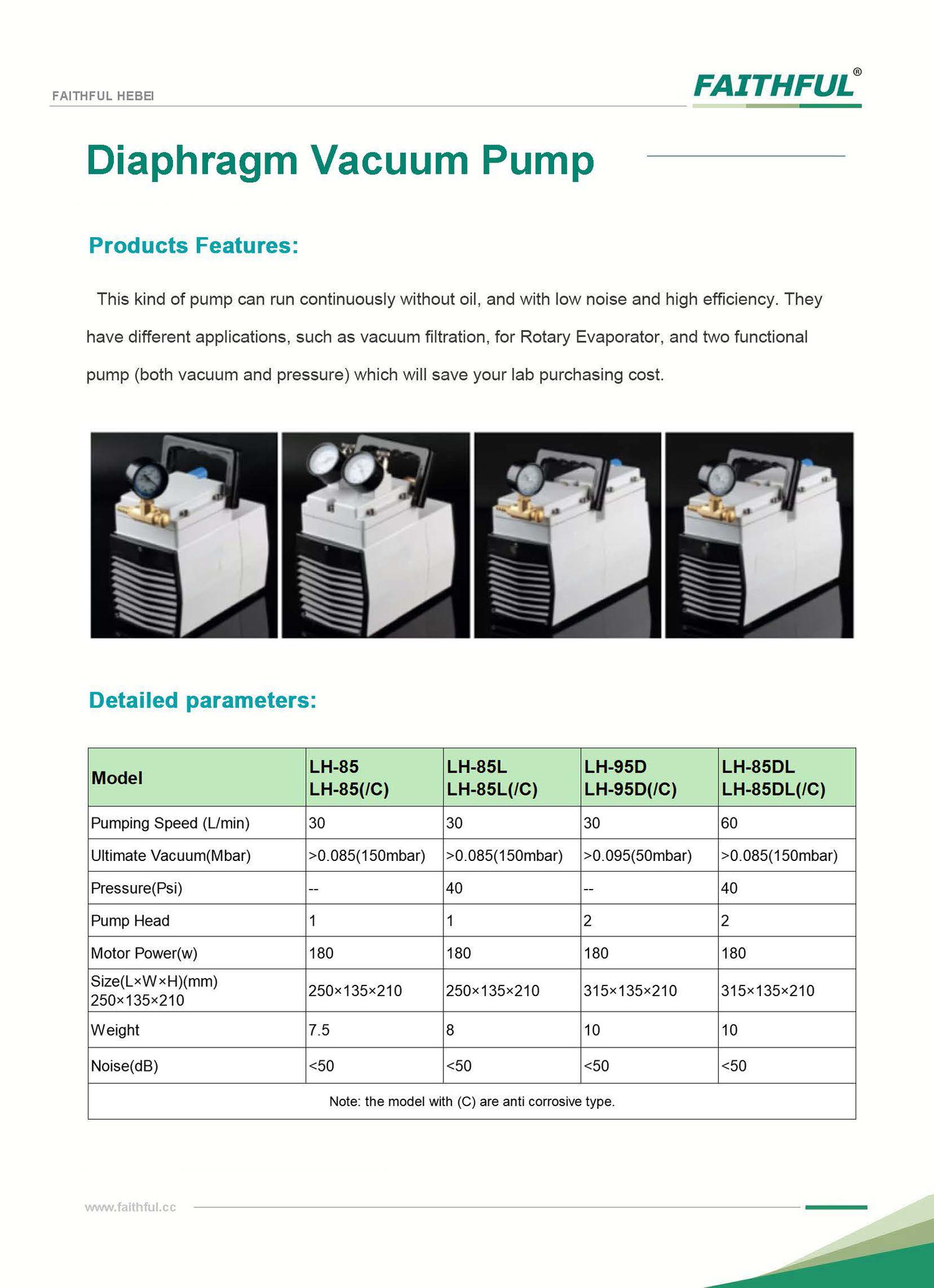 Faithful LH-85(/C) Diaphragm Vacuum Pump (30L/min; Anti corrosive) | EMIN.CO.ID