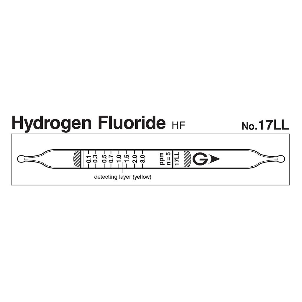Hydrogen fluoride reacts with indicator to produce brown stain. |