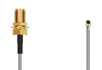 GCT (Global Connector Technology) CABLE 348 RF-100-A-1 RF Cable Assemblies I-Pex MHF I RA Plug2SMA STRJck R Mt 6 GHz,100mm, 1.13mm grey