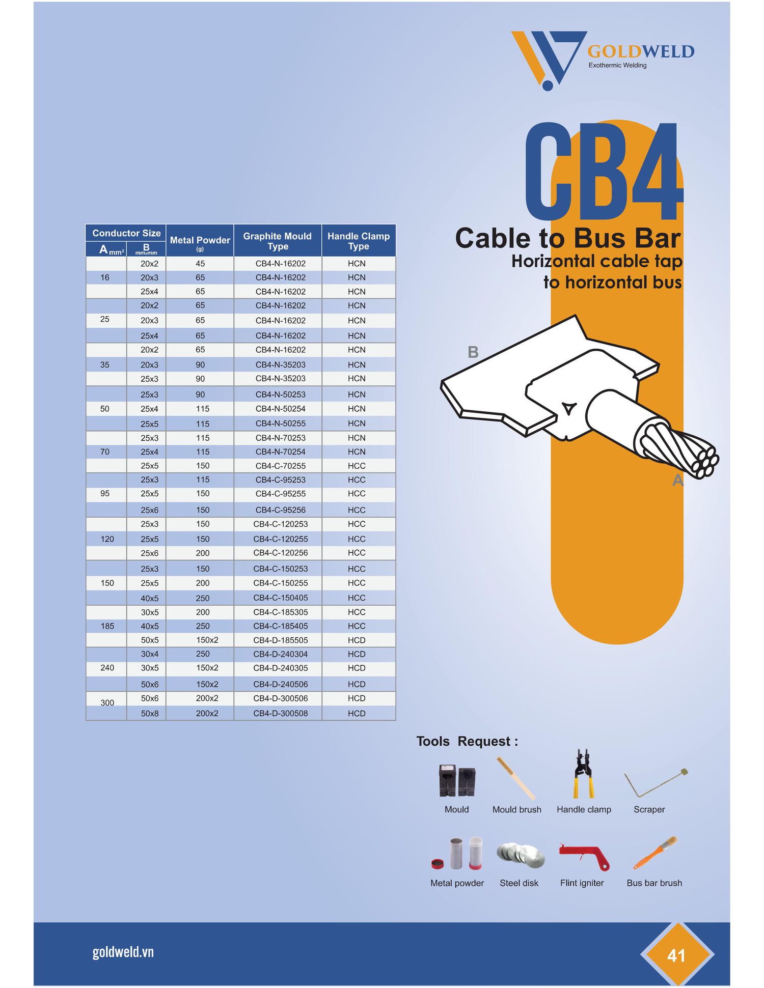 Goldweld CB4-N-25202 Welding Mould connect Bus bar to Bus bar (A: 25mm²; B: 20x2mm) | EMIN.CO.ID
