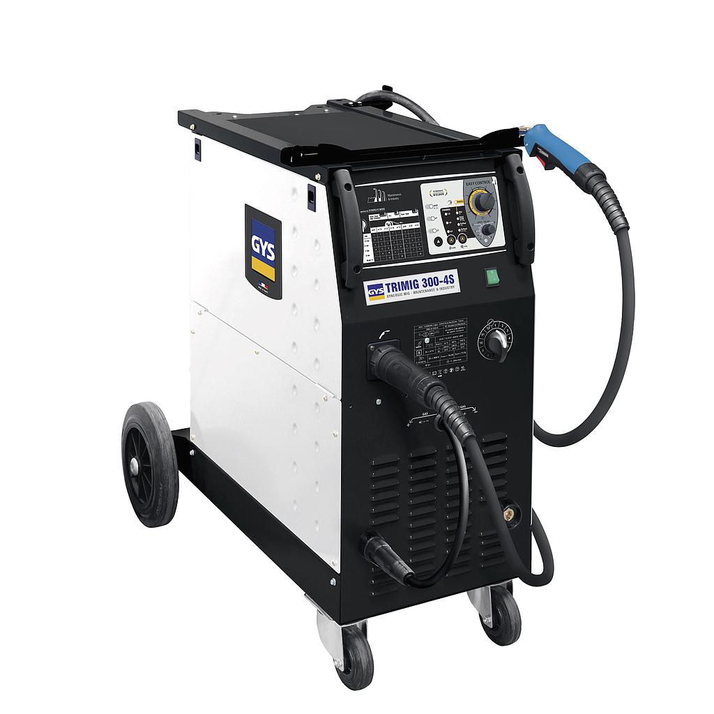 The TRIMIG 300-4S DV 230-400V is the ideal 3-phase “synergic “welding machine for locksmith work, maintenance and semi-industrial production work. Suitable for welding steel, stainless steel and aluminium, it is recommended for intensive professional use up to Ø1.2mm (Ø1.6mm occasionally) using its 4 roller wire feeder.