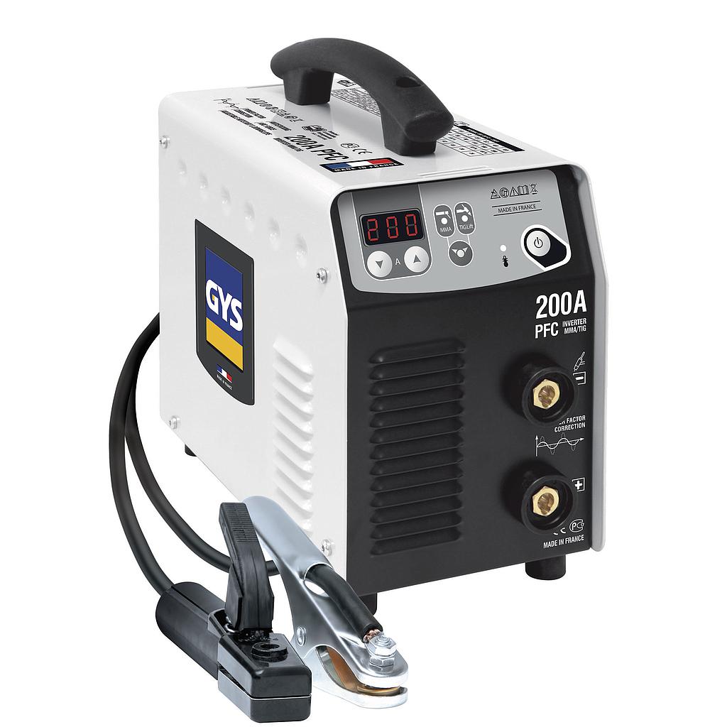 With its high duty cycle the PROGYS 200A PFC is suitable for intensive use with any type of electrode from Ø 1.6 to 5 mm : rutile, basic, steel, stainless steel and cast iron. Designed with Anti-Sticking, Hot start and adjustable Arc Force technology the machine is easy to use