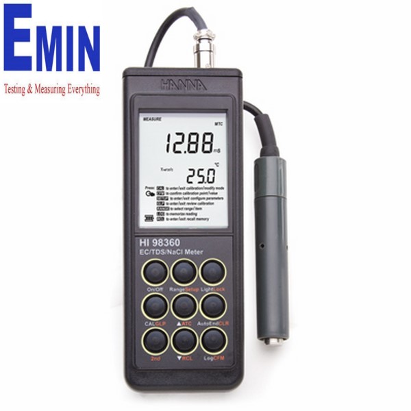 Order Information: HI 98360 is supplied with HI 76309/1.5 conductivity probe, batteries, instructions and rugged carrying case.