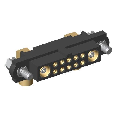 Harwin M80-4C11005F1-01-309-01-309 Power to the Board Datamate 2-Row Mix-Tek Female Crimp Connector, Hexagonal slotted jackscrews, 10 x Small Bore (24-28 AWG) signal contacts, 2 x 2.7mm 90 degree Crimp Coax contacts