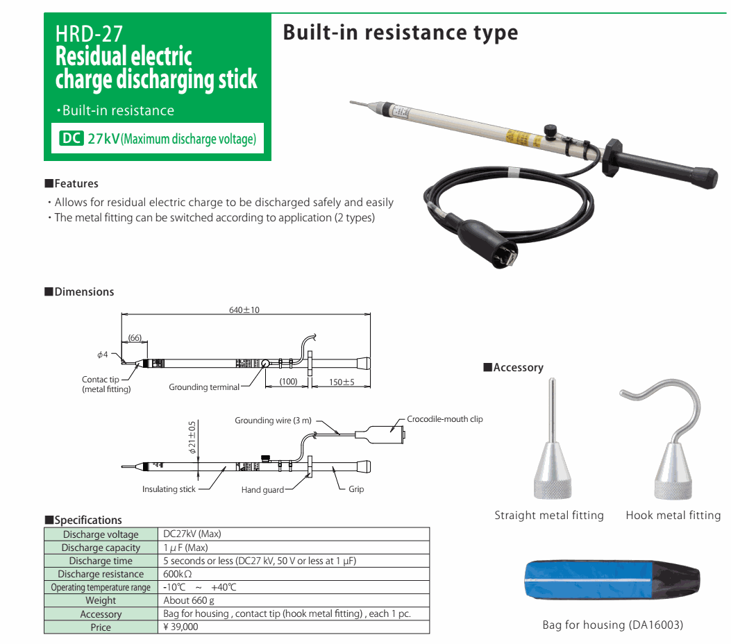 HASEGAWA HRD-27 Residual Electric Charge Discharging Stick (DC 27kV) | EMIN.CO.ID