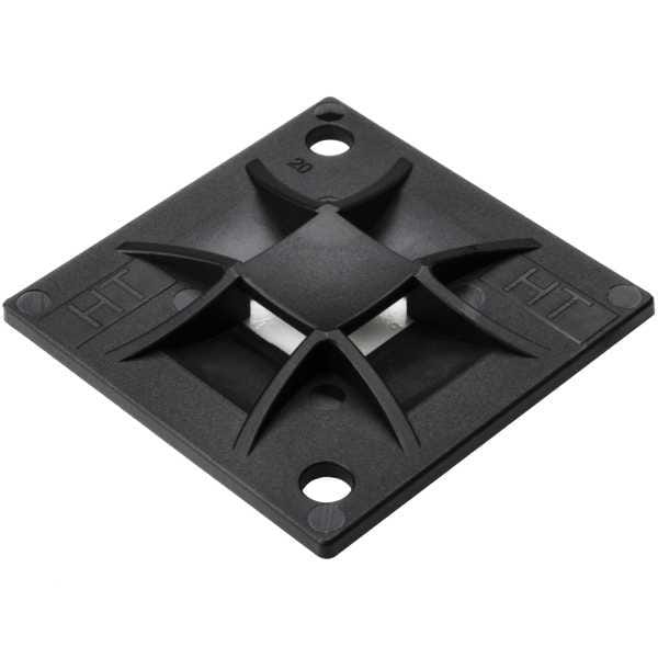 HellermannTyton 151-10916 4-Way Mount Q Tie Mount with Adhesive, 1.6" x 1.6" x 0.26", 4 way entry for Q18 thru Q120 ties, PA66, Black, 50/pkg | EMIN.CO.ID