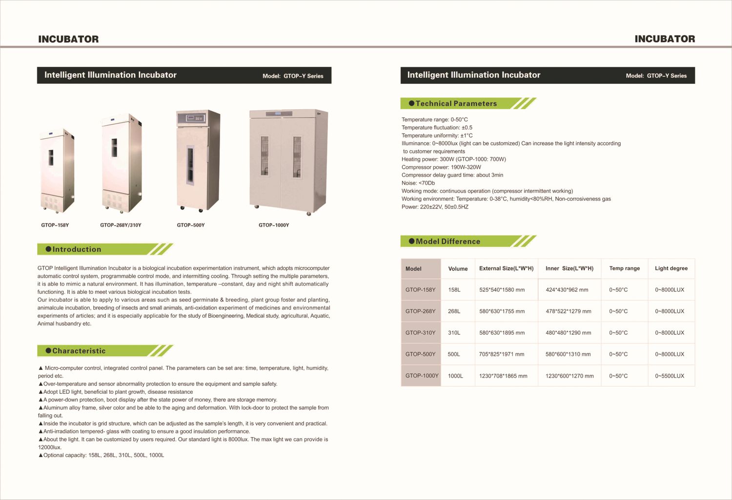 Life: 100,000 hours at room temperature; Note: All incubators of our company can increase the light intensity according to user requirements