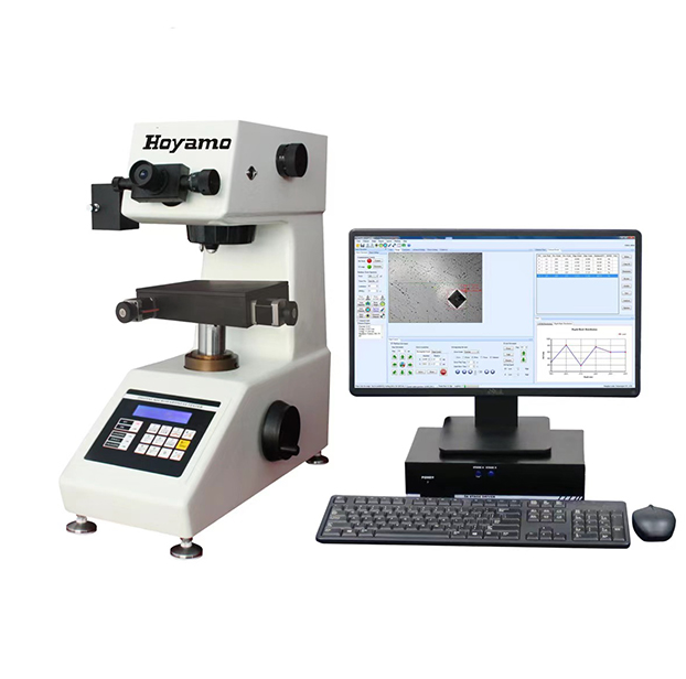 Micro Vickers and knoop measurements can be used for hardness testing of most materials, including metals, ceramics and composites. The Vickers hardness tester has a small indenter and is widely applicable to the measurement of indentation contours, enabling hardness measurements on thin materials such as foils, surfaces of small parts, depth of surface hardening layers, etc.