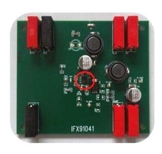 Infineon DEMOBOARDIFX91041TOBO1 Voltage Regulator - Switching Regulator Demoboard for industrial step-down DC/DC converter with integrated MOSFET and 1.8A current capability.