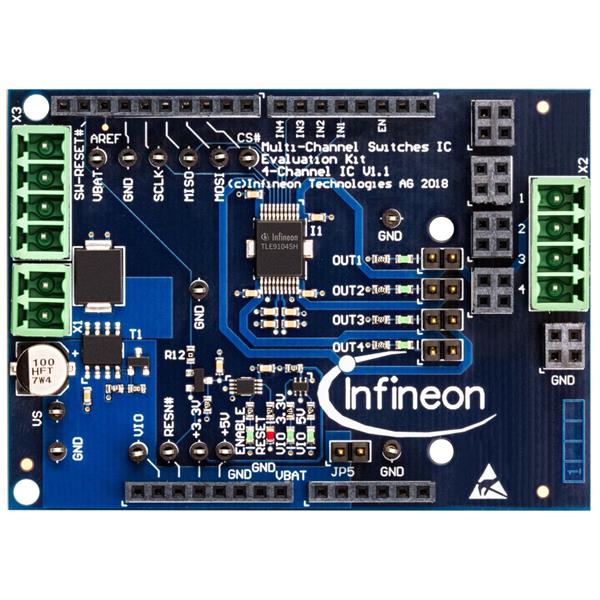 Infineon TLE9104SHDEVBOARDTOBO1 Multiple Switches The TLE9104SH shield in the Arduino form factor is an universal development/evaluation kit for Infineon s 4-channel Low-Side Switch TLE9104SH that is designed, but not limited to, Engine Management Systems and other Powertrain Applications