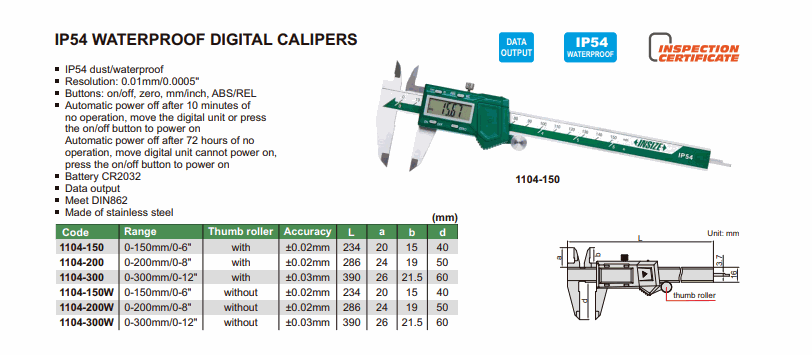 INSIZE 1104-150W IP54 Waterproof Digital Caliper (0-150mm/0-6") | EMIN.CO.ID