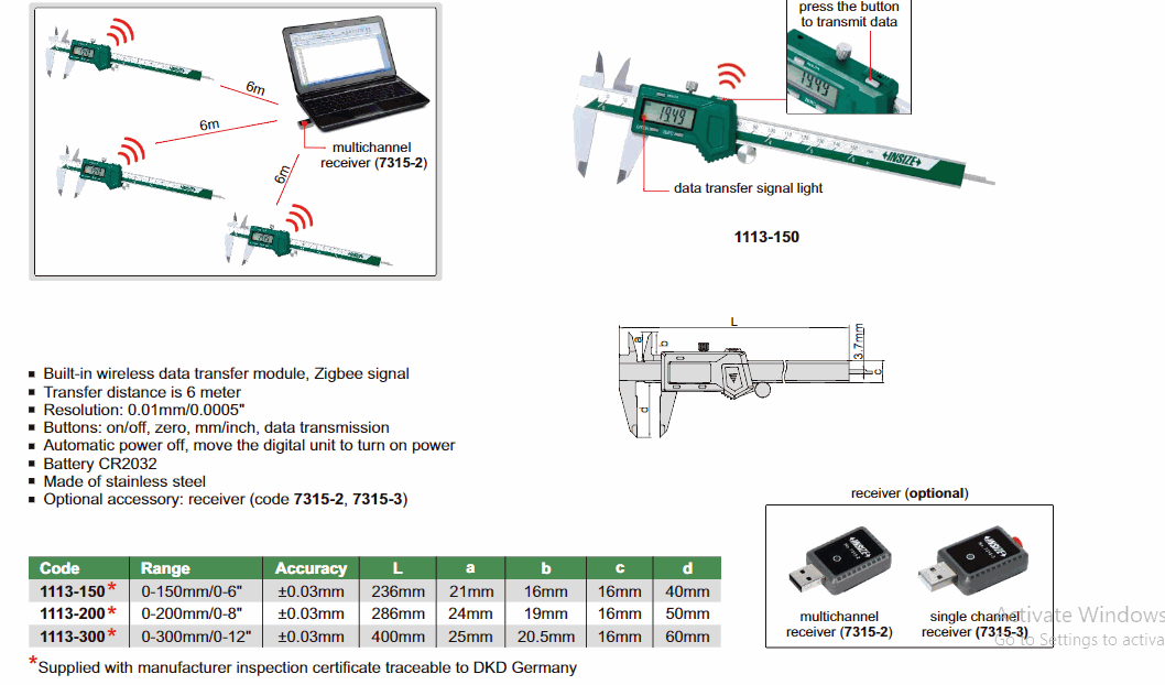 INSIZE 1113-300 Wireless Digital Caliper (Non-Waterproof) (0~300mm; Non-Waterproof) | EMIN.CO.ID