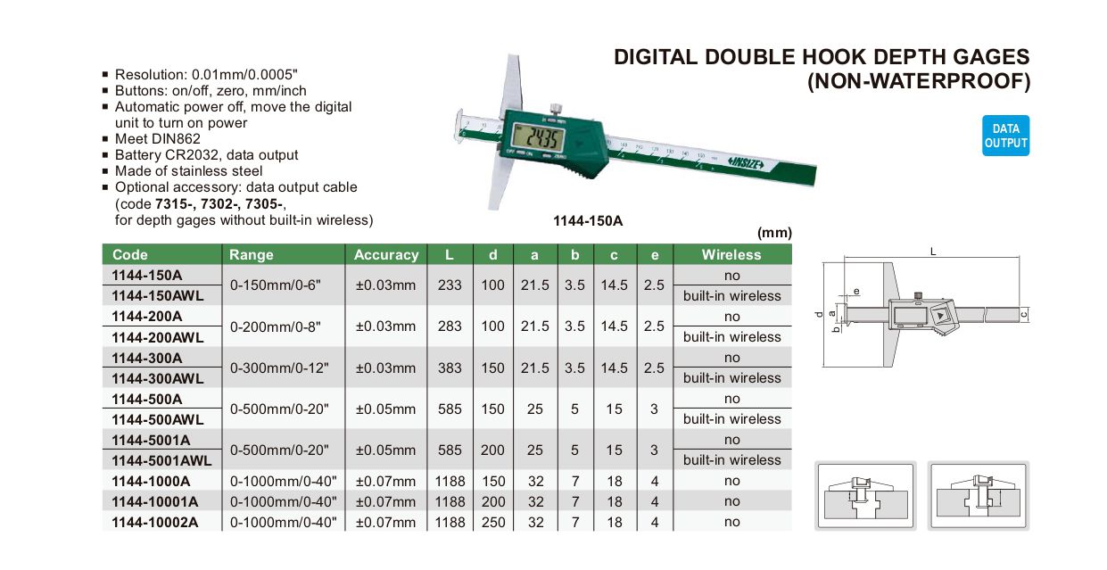 INSIZE 1144-5001A Digital Double Hook Depth Gage (0-500mm/0-20") | EMIN.CO.ID