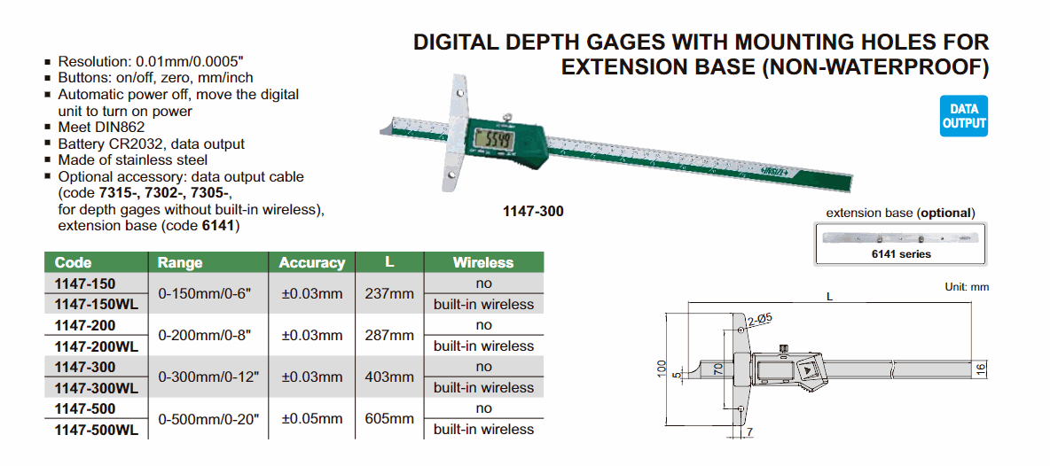 INSIZE 1147-200 Digital Depth Gage With Mounting Hole For Extension Base (0~200mm) | EMIN.CO.ID