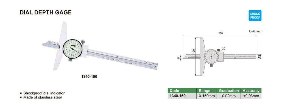 INSIZE 1340-150 Dial Depth Gage (0-150mm, ±0.03mm, 0.02mm) | EMIN.CO.ID