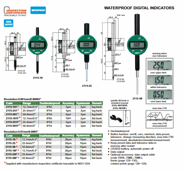 INSIZE 2115-101 Warerproof Digital Indicator (12.7mm/0.5"; lug back) | EMIN.CO.ID
