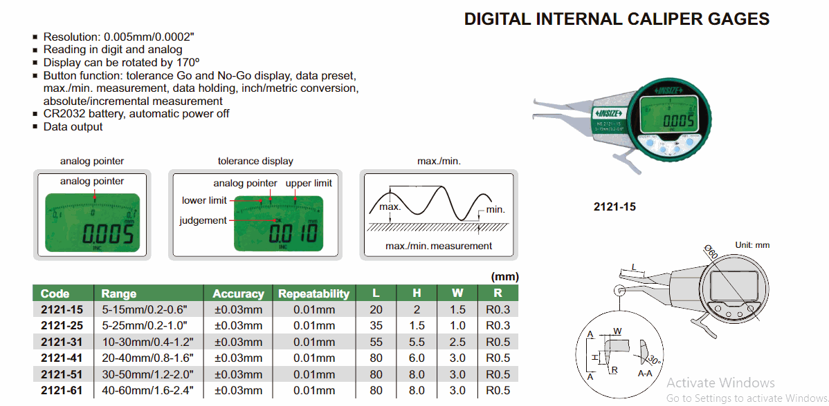 INSIZE 2121-25 Digital Internal Caliper Gage (5-25mm/0.2-1.0") | EMIN.CO.ID