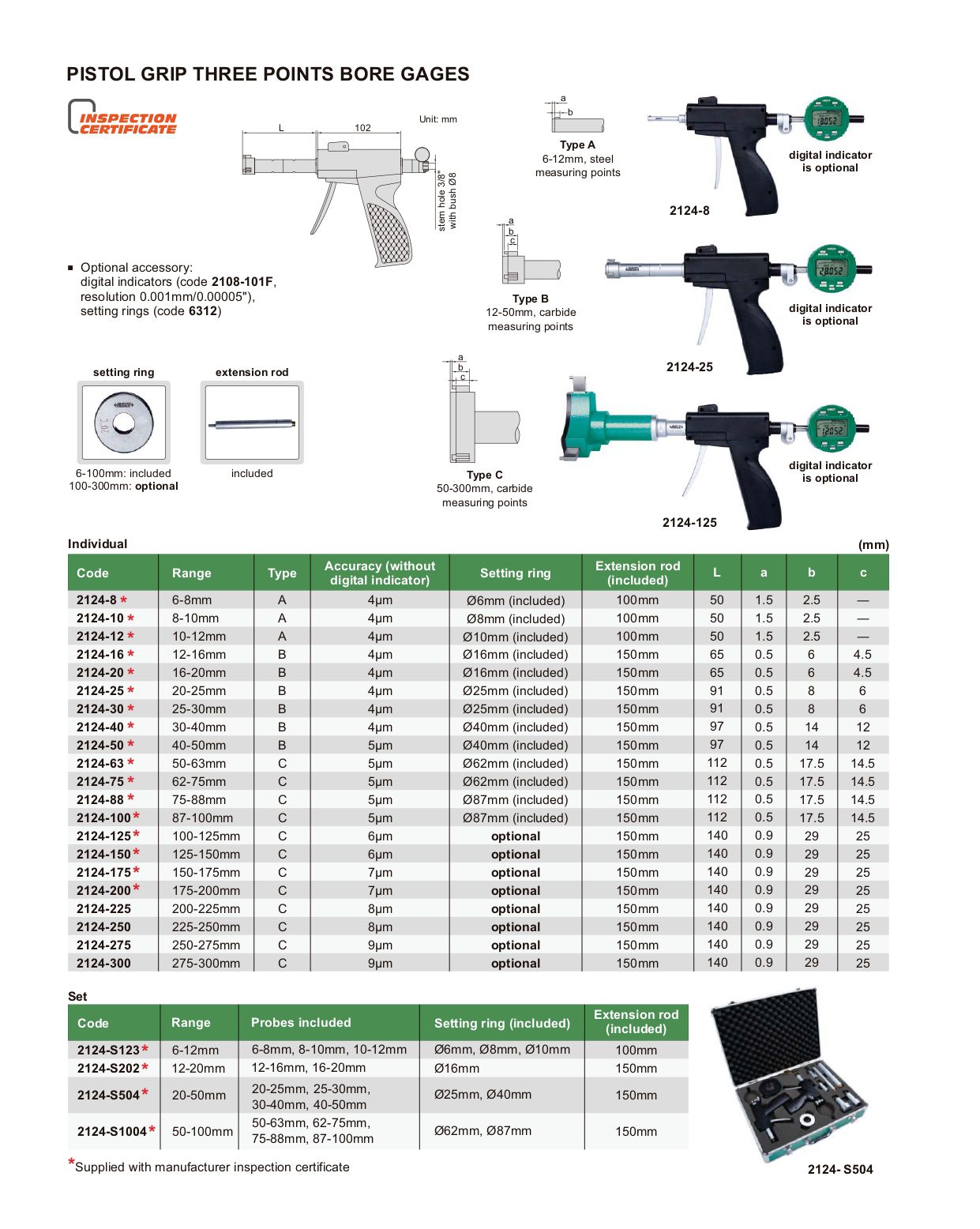 INSIZE 2124-175 Pistol Grip Three Points Bore Gage (150-175mm; Type C) | EMIN.CO.ID