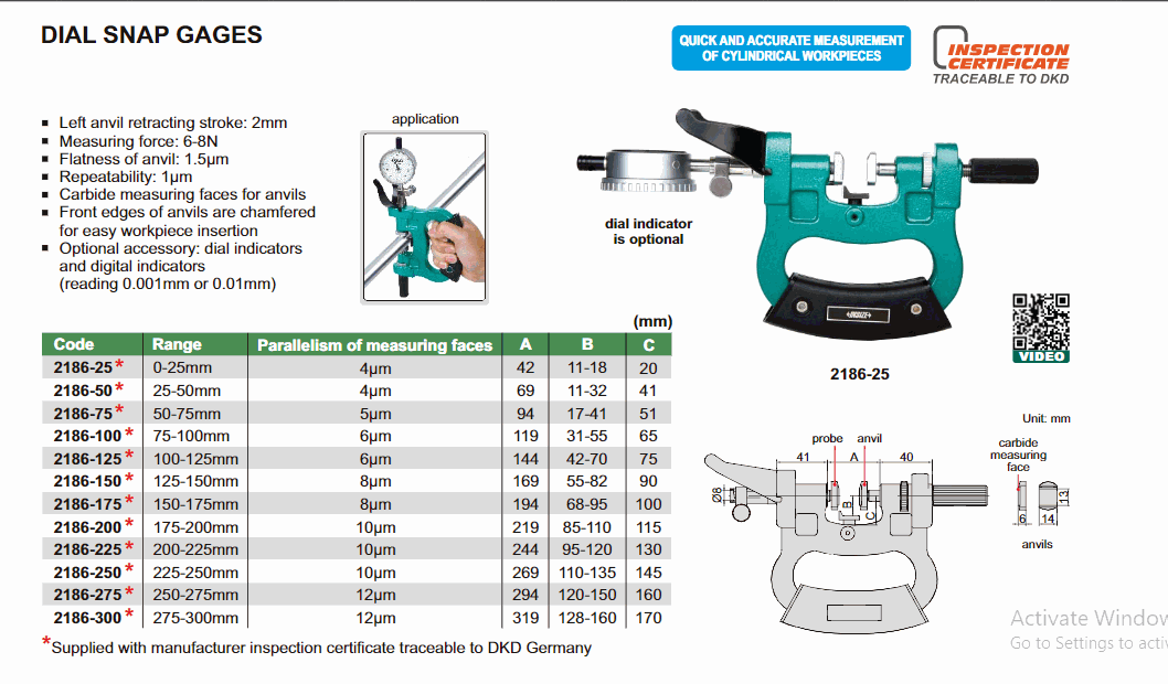INSIZE 2186-50 Dial Snap Gage (25-50mm) | EMIN.CO.ID