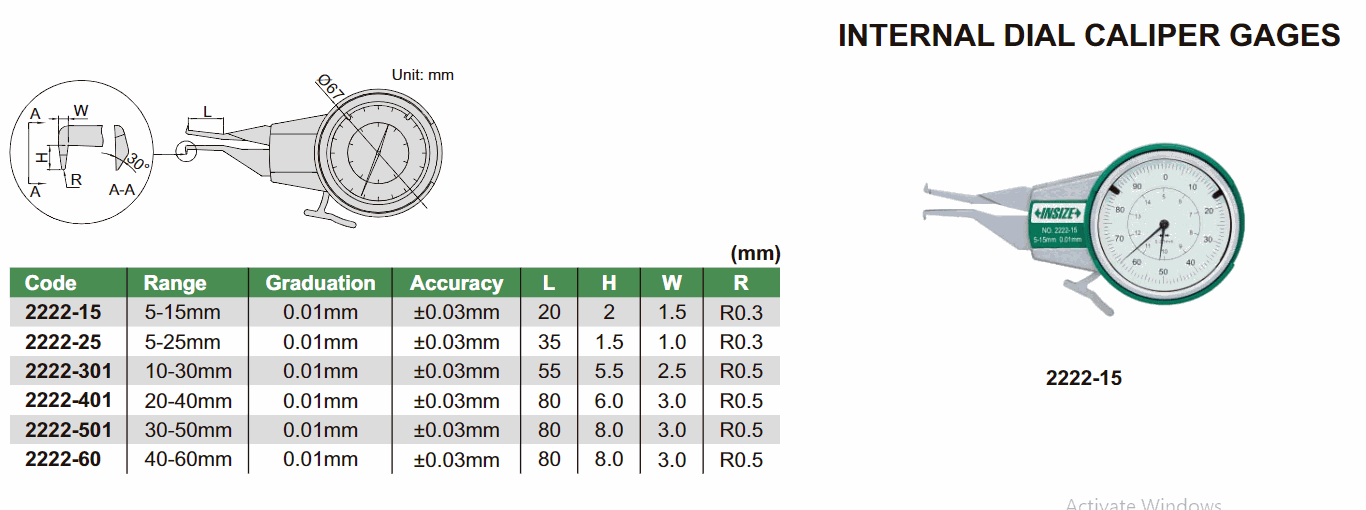 INSIZE 2222-501 Internal Dial Caliper Gage (30-50mm) | EMIN.CO.ID