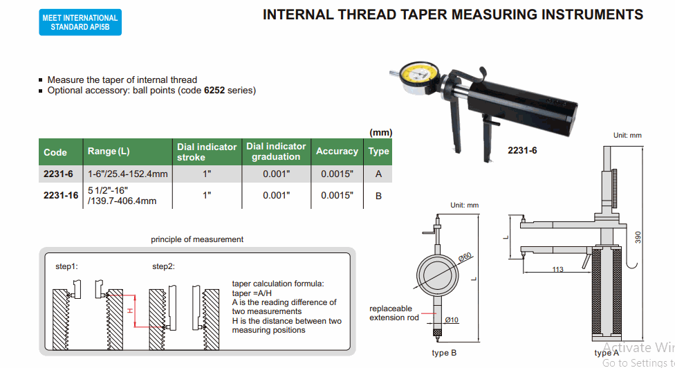 INSIZE 2231-6 Internal Thread Taper Measuring Instrument (1-6”/25.4-152.4”; 0.001”) | EMIN.CO.ID