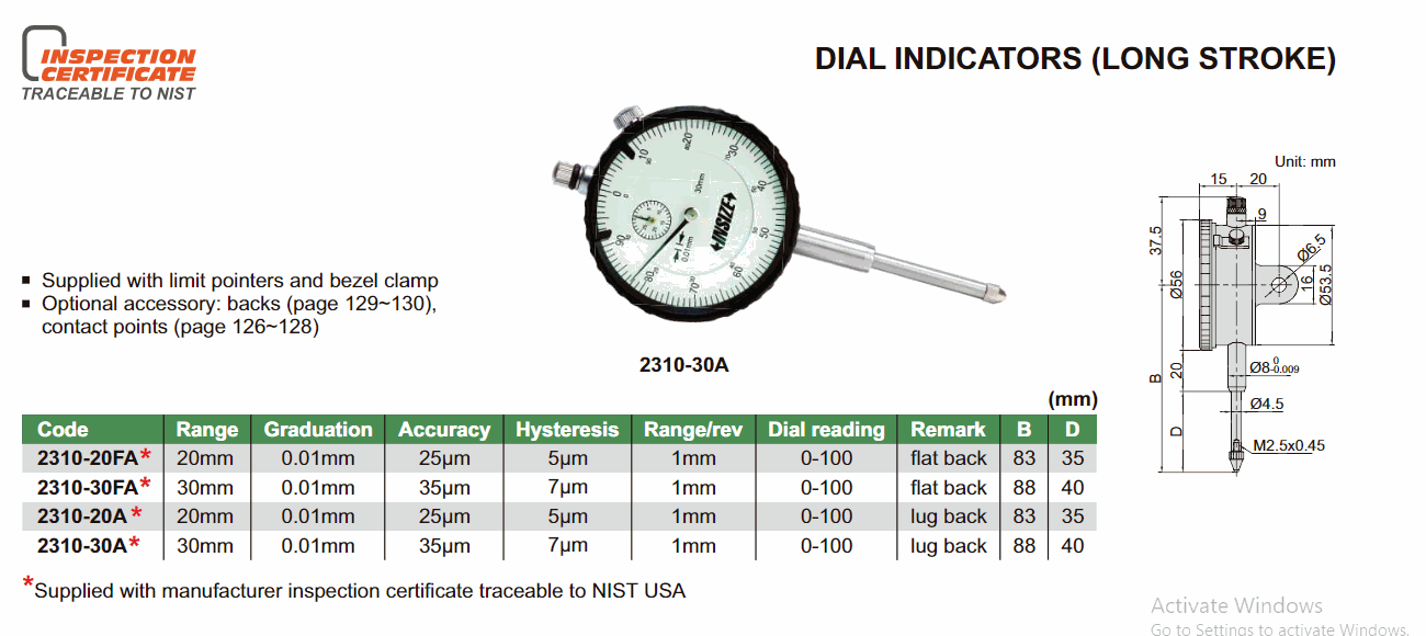 INSIZE 2310-20FA Dial Indicator (Long stroke) (20mm) | EMIN.CO.ID