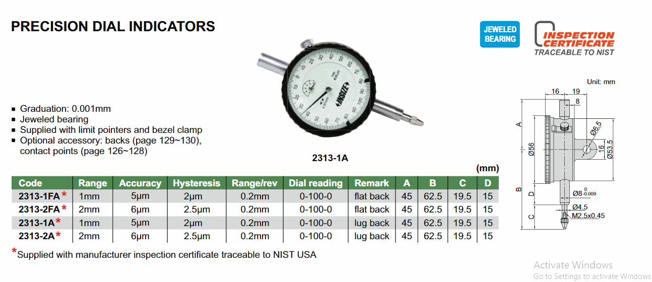 INSIZE 2313-2FA Precision Dial Indicator (2mm) | EMIN.CO.ID