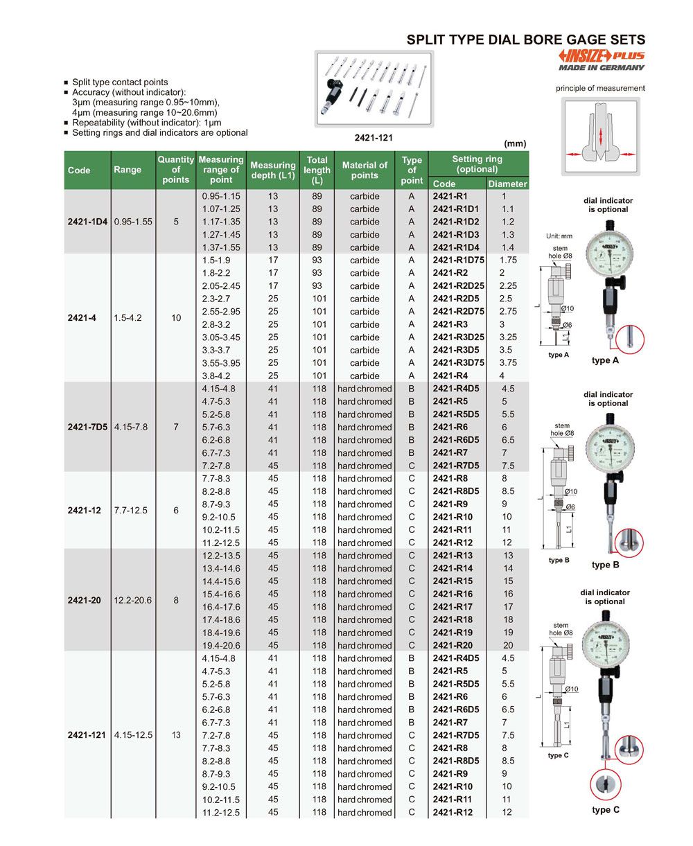 INSIZE 2421-12 Split Type Dial Bore Gage Set (7.7-12.5mm, 6) | EMIN.CO.ID