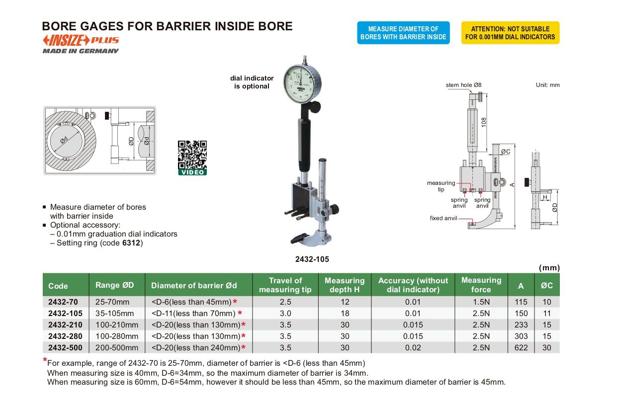 INSIZE 2432-210 Bore Gages For Barrier Inside Bore (100-210mm) | EMIN.CO.ID